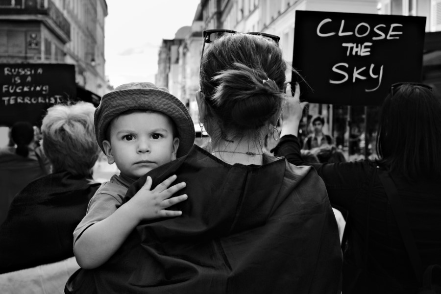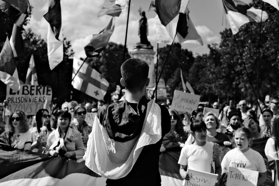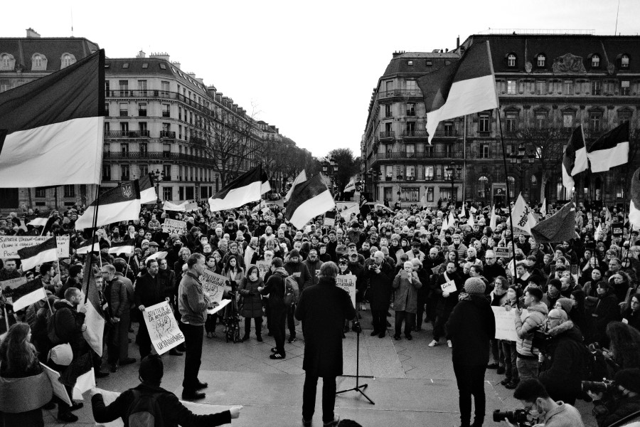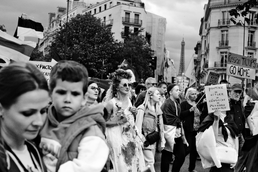 These photos document three years of rallies and events during which Ukrainians settled in Paris, joined by refugees and supporters of various nationalities and backgrounds. Many of these people had mobilized many years before, in 2014, when russia started the war against Ukraine with its invasion of eastern Oblasts and with the annexion of Crimea.